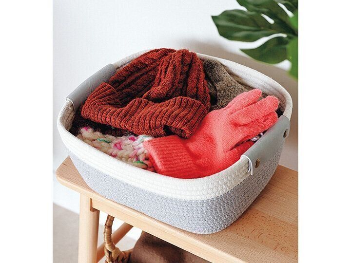 細かい物こそ定位置をつくってあげることで、散らからなくなります。アウター置き場の近くに冬小物専用のバスケットを置き、そこにポイポイ収納を。子どもにも簡単です!