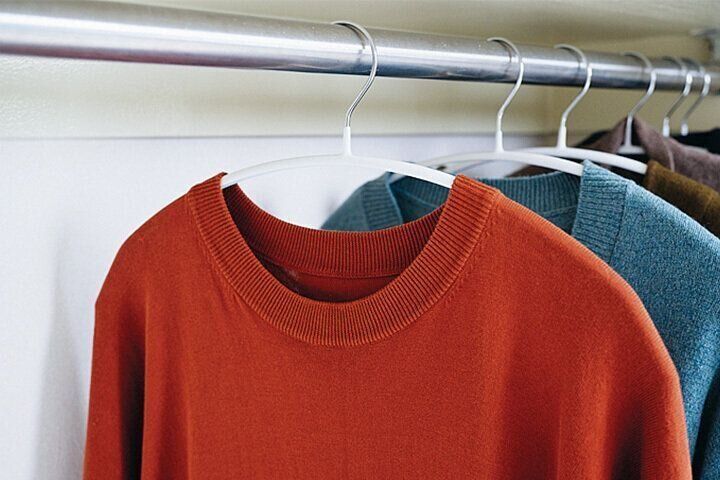 目が詰まっていて伸びにくいニットは、すべりにくい加工がされたハンガーを使って収納すると省スペースに