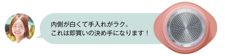 内側が白なら、おだしなど薄い色の汁も色がキレイに見え、食材の色も映える。鍋料理に限らず、いろいろな料理や調理法に対応するのが便利♪
