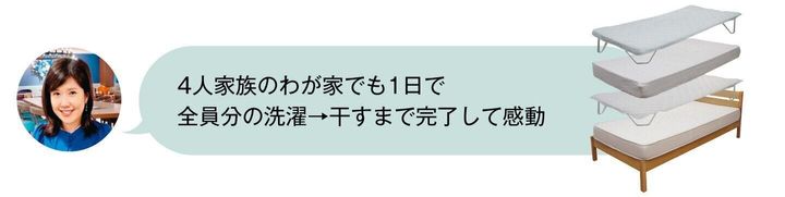 3種類のアイテムの機能を1つでまかなえるから、洗濯の手間が3分の1になり、干すスペースも削減。省スペースで収納できるのも魅力。