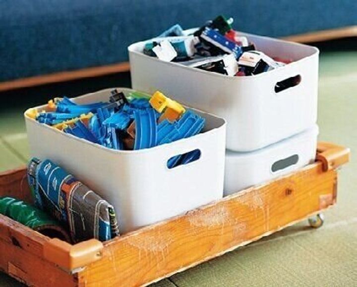 無印良品の収納の魅力は、シンプルで丈夫なこと。引っ越しをしても家族構成が変わっても、長ーく使えています。どこかが傷んでも、ふただけ、金具だけなどパーツ単体で買えて、全部を買い替えなくていいのも魅力ですね。