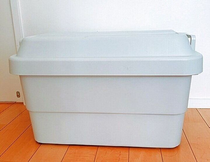 「季節物の衣類収納に、ラベルシールを貼って使っています。上に物をのせてもOKな丈夫さがいいです」。屋外でも使用できるので、部屋の中の物を減らしたいときにも活躍。