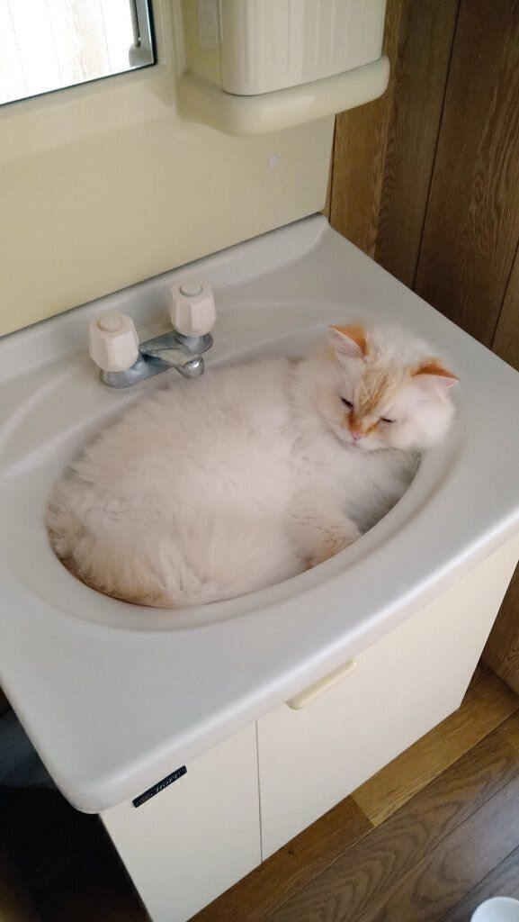 「気付いたら洗面台に入っててびっくりした……」とコメントを添えて投稿した飼い主さん。