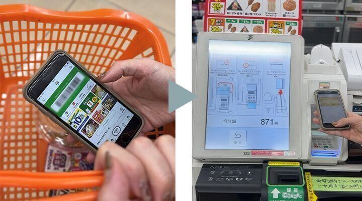 あとは、会計時にセブン-イレブンアプリの会員コードを提示して、VポイントPayアプリのスマホのタッチ決済で完了!