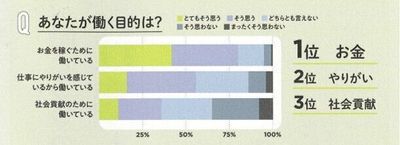 ■東島アナ「詳しく見ますと、まず、“あなたが働く目的は?“という問いに対して1位がお金、2位やりがい、3位が社会貢献という結果になっています」
