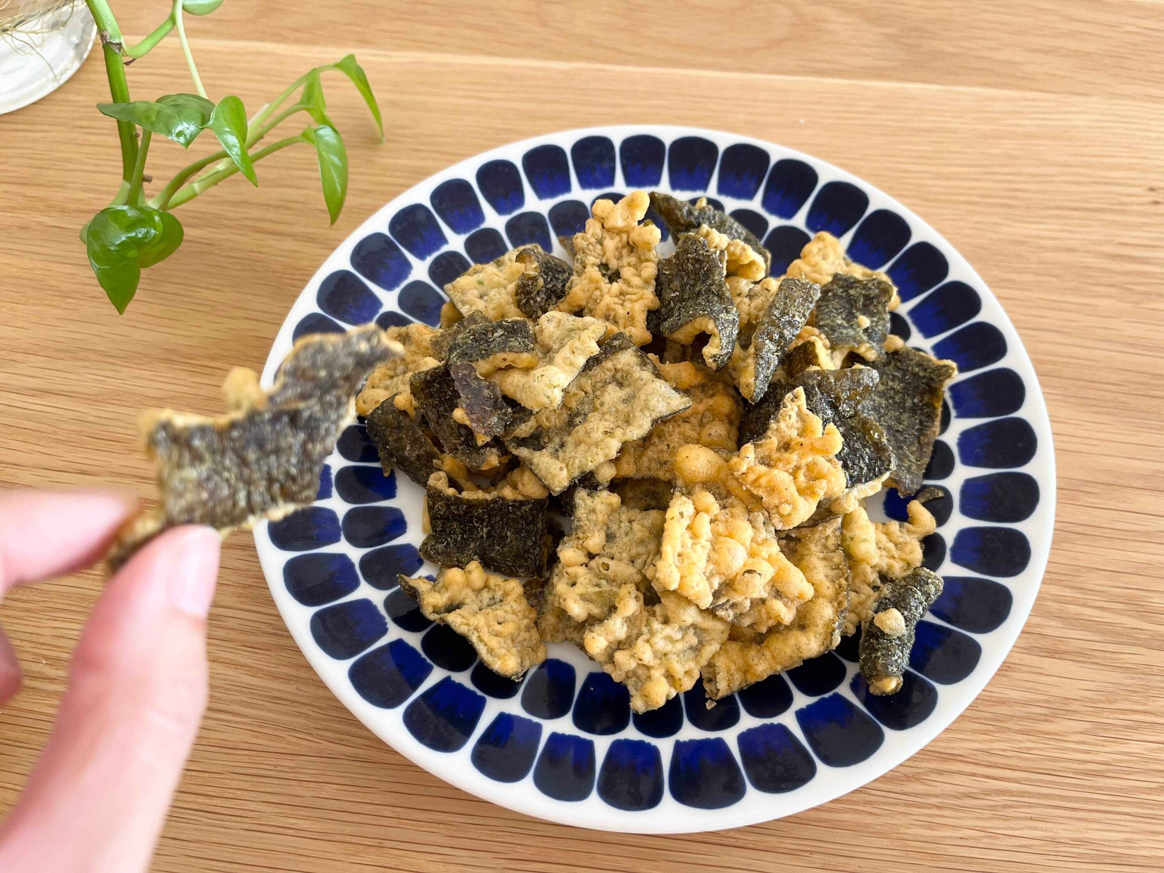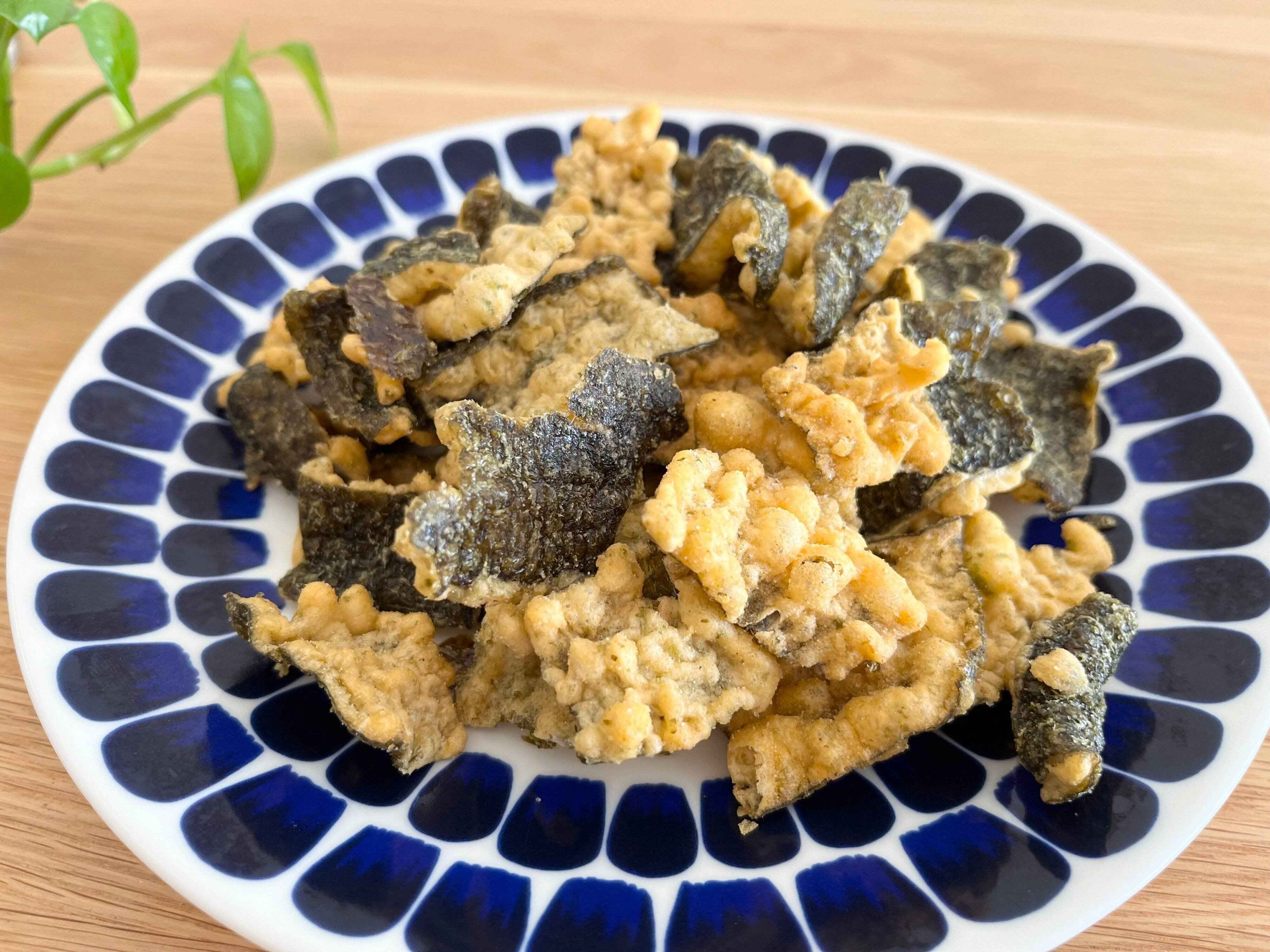 こちらの商品は、厳選された国産の海苔に衣をつけてサクッと揚げ、明太子マヨネーズ風味に仕上げたのり天です。封を開けた瞬間から香ばしい海苔と、明太子の風味が広がって食欲をそそります。
