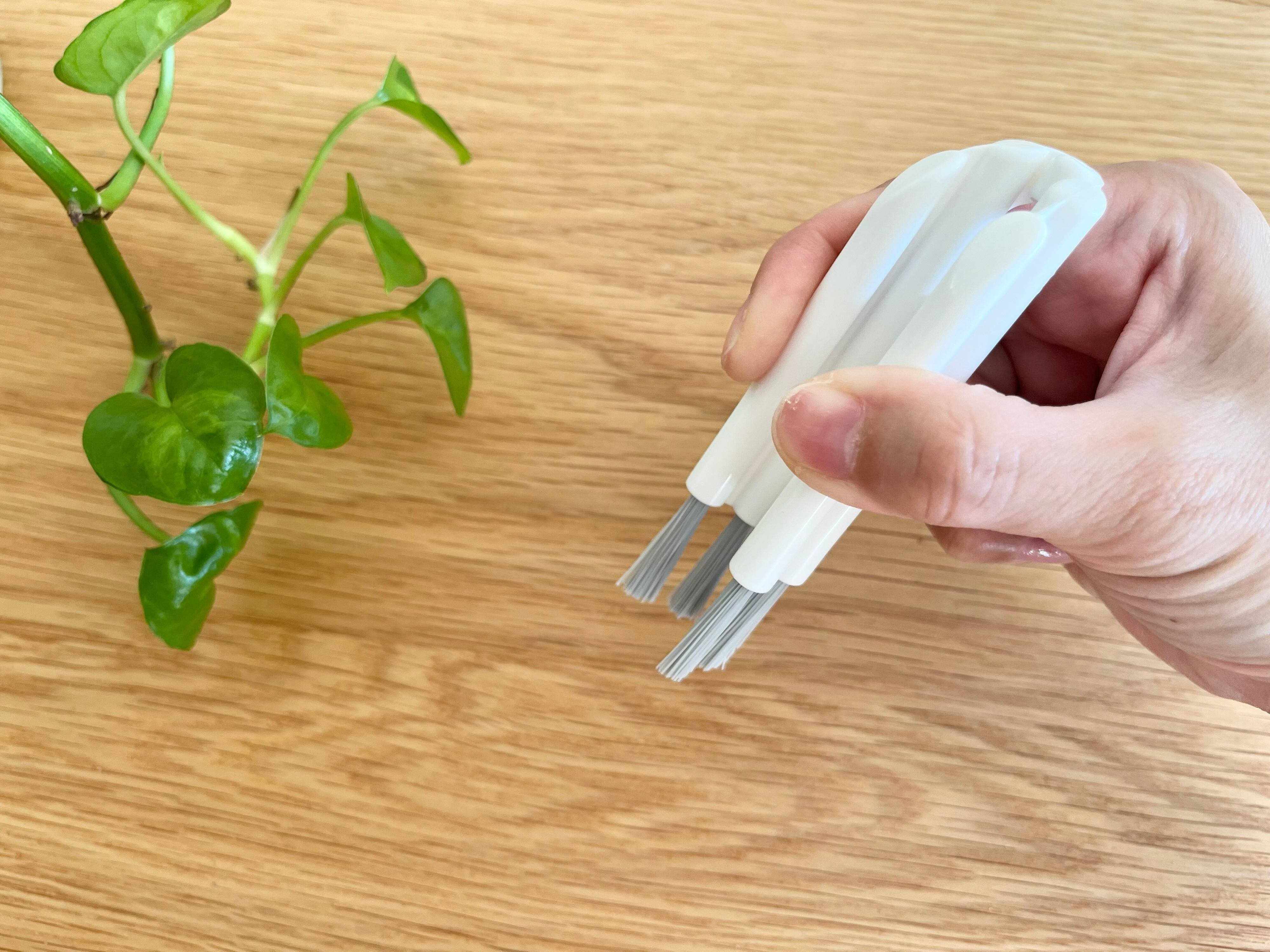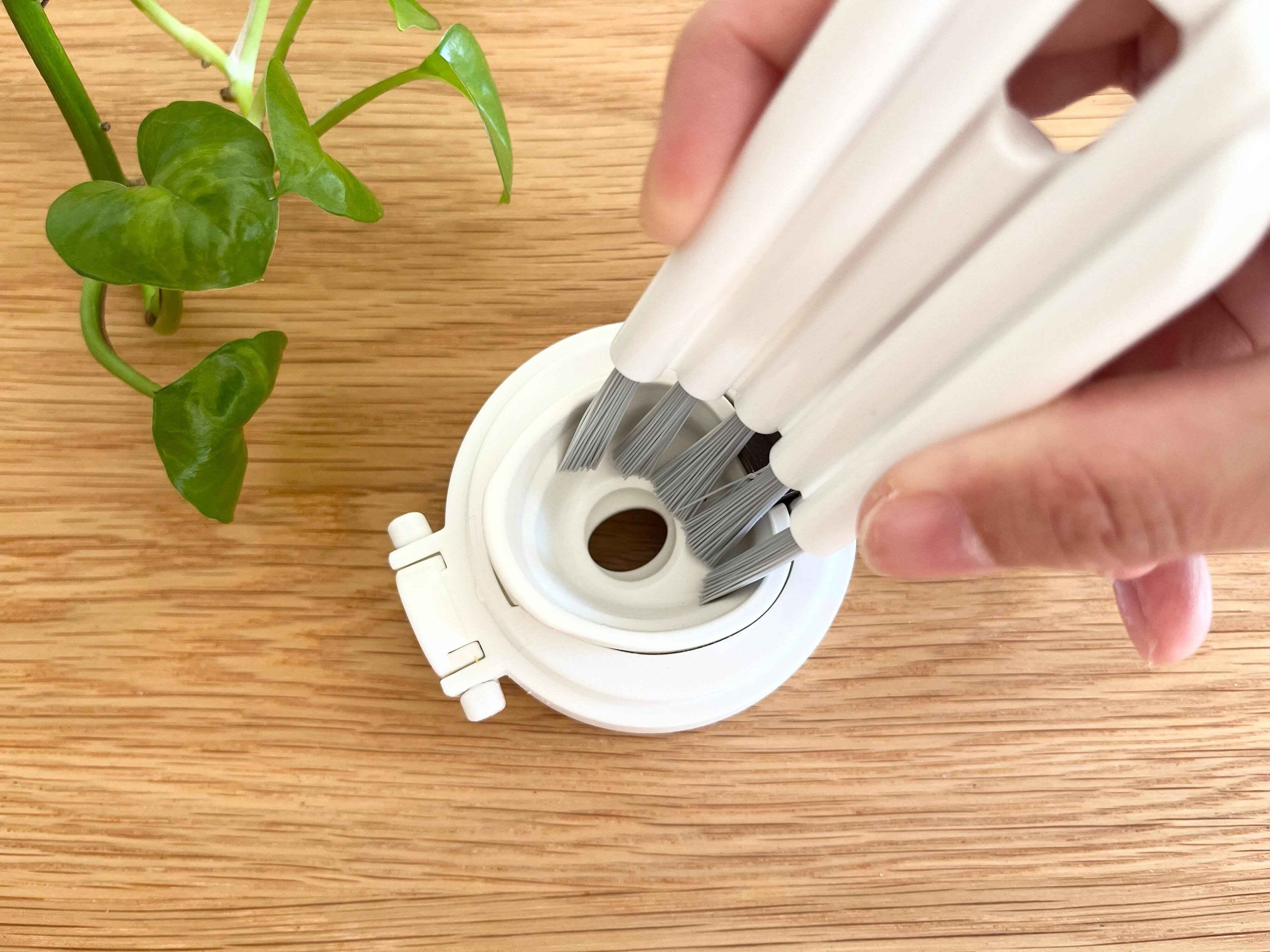 ブラシの毛先は適度な長さがあり、程よく硬さもあるので、水筒の蓋やパッキン、細かい溝にもフィットしてしっかり汚れをかき集められるようになっています。まさかキッチンブラシが曲がって、いろんなカーブや溝に自由自在にフィットできるようになるなんて画期的!今までの洗い物の苦労から解放されて、ラクに洗えるようになっちゃうかも。