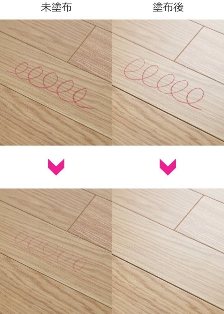 ※油加工された床(オイルステイン、ロウ仕上げ等)、ロウタイプのワックスを使用した床、塗装されていない木床(白木床等)、特殊な床(ウルシ・鏡面仕上げ等)、石床、土足で歩く床には使えません。