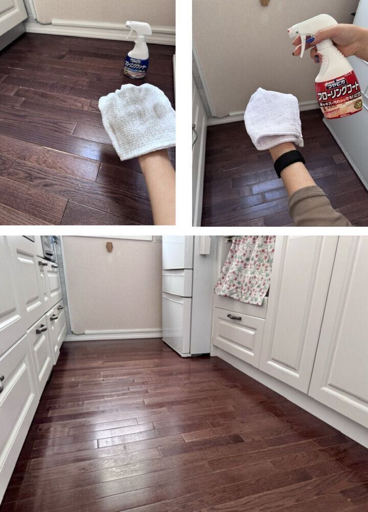 「つやピカ フローリングコート」は、雑巾にシュッとして「つやピカ フローリングクリーナー」できれいにした箇所に塗るだけで本当にピカピカになりました!