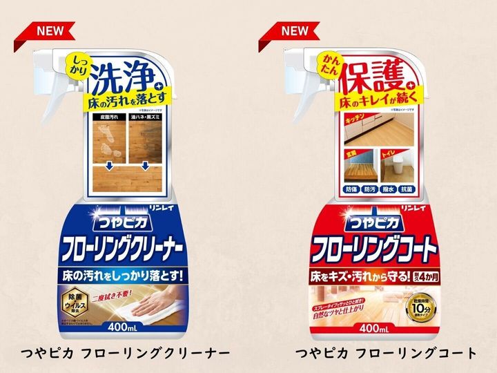 家の中で床は面積が広く、油汚れや食べこぼしなど色んな汚れがつきやすい場所。だけど忙しくて毎日こまめに拭き掃除するのは大変ですよね。そこで、シュッとスプレーしてひと拭きするだけで、キレイが続くアイテム「つやピカ フローリングクリーナー」と「つやピカ フローリングコート」が株式会社リンレイから新登場!