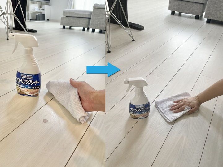 こまめに掃除機をかけてほこりなどを取り除いていても、後回しにしがちなのがフローリングの拭き掃除。サンキュ!公式インスタグラマーのすみさんは、「調理ではねた油汚れや、食べこぼしでベタベタ床が汚れるのが悩み」と話してくれました。