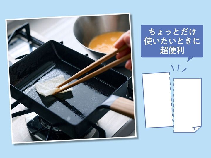 卵焼き器に油を少しのばしたいとき、一度使った計量スプーンをさっと拭きたいとき、1枚使うのはもったいない…と思うとき。ハーフサイズは使い勝手のいいサイズ !