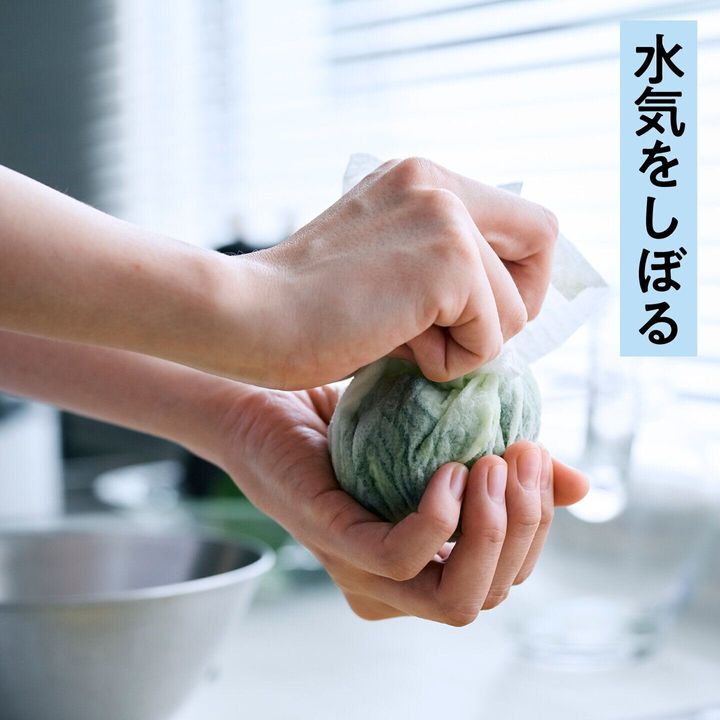 塩もみきゅうりをしぼって水気を取ったり、水切りヨーグルトや豆腐の水切りなど、布巾代わりに。ギューッとしぼっても破けにくくて丈夫!