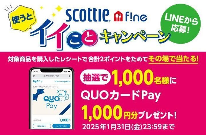 上記記事で紹介した商品を含む対象商品を購入したレシートで合計2ポイントをためてLINEから応募! 抽選で1000名様に「QUOカードPay1000円分」が当たる!