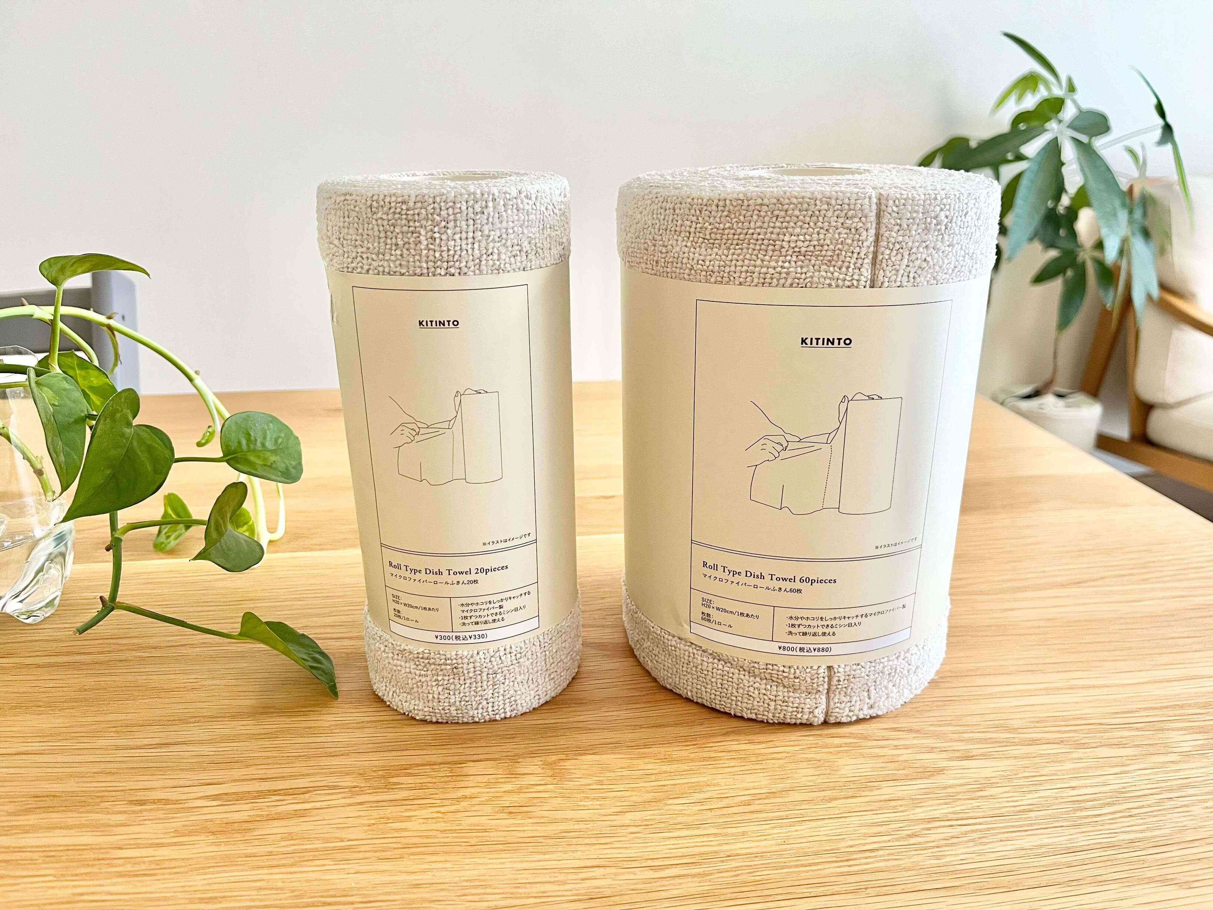 例えばこちらの「マイクロファイバーロールふきん」なら、通常商品は20枚入りで330円ですが、大容量シリーズだと60枚入りで880円で販売されています。