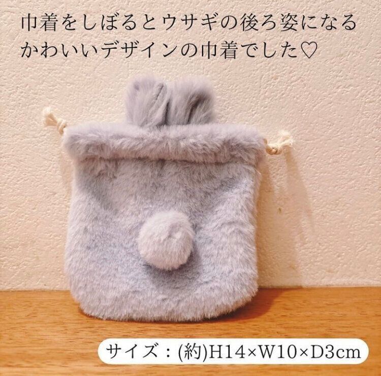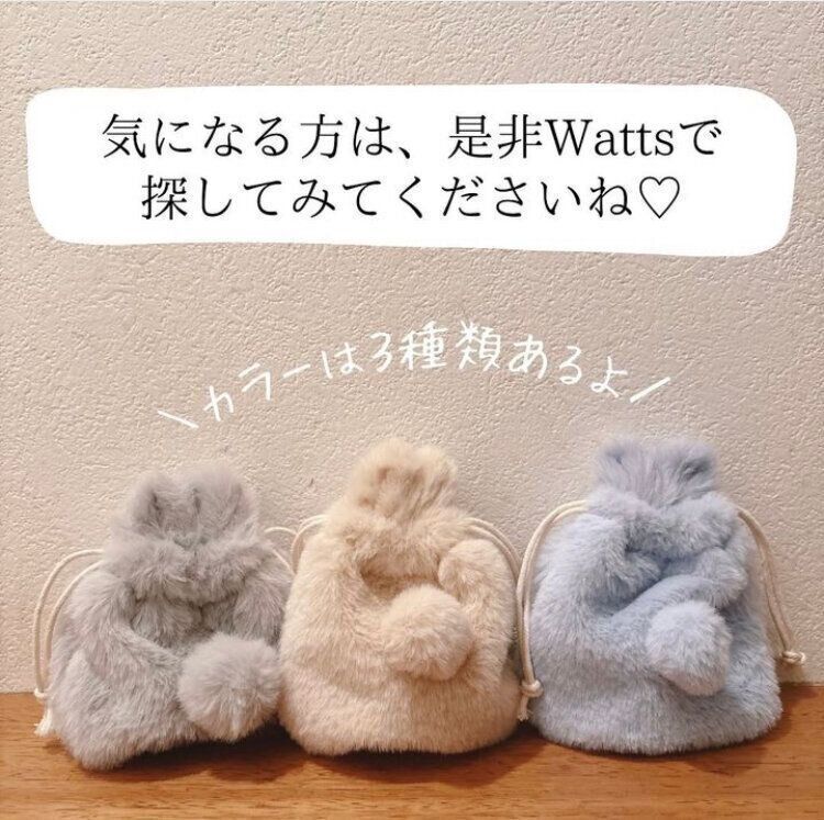人気のかわいいウサギが、ポーチになってしまいました!しかも、よくあるイラストではなく、もふもふのぬいぐるみのような見た目。こちらのアイテムはワッツで購入できる「ラビット巾着」(110円)。グレー、ベージュ、ブルーの3色があるので、好みのウサギを選ぶことが出来ます。ポーチの中身が沢山入っていると、より、ぷっくりとしてかわいいですね。しっかり尻尾もついていて、この巾着を持っているだけも癒されそうです。