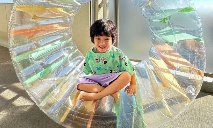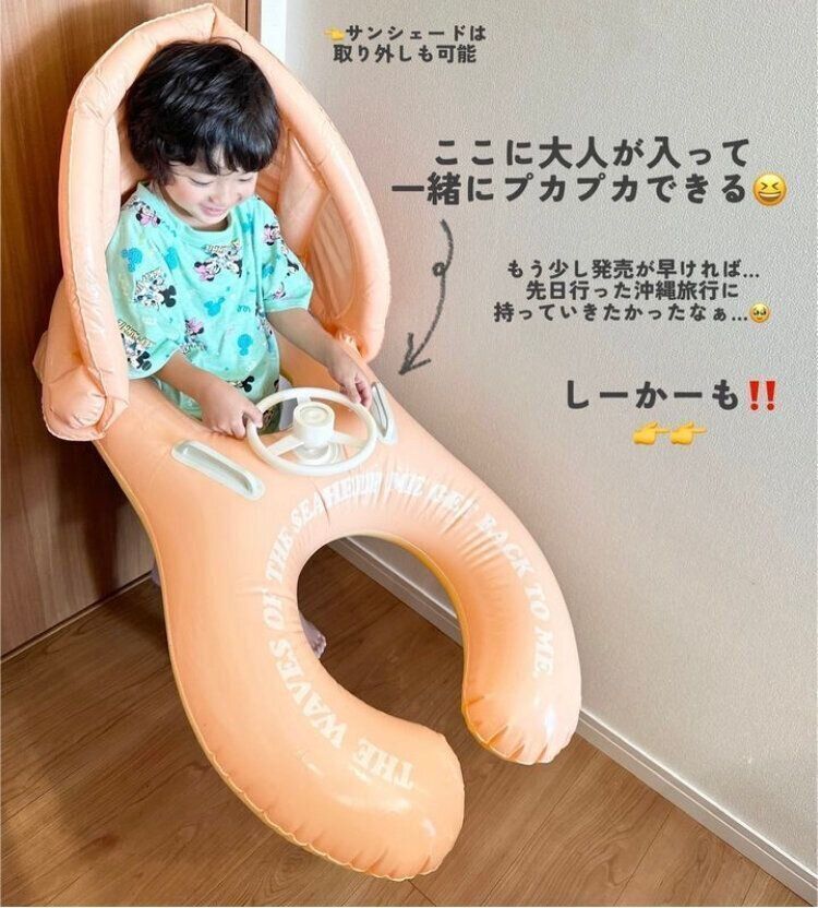 毎年いろいろな種類のかわいい浮き輪を販売している3COINSですが、今年は親子でのプール遊びにぴったりの浮き輪が登場!なんと、2人で使える浮き輪「親子浮き輪/水遊びアイテム」(1,650円)です。小さい子ども1人で浮き輪を使用していると落ちたり、どこか遠くに流されてしまわないかと心配なことも多いですが、これさえあればそんな不安も解消されます。