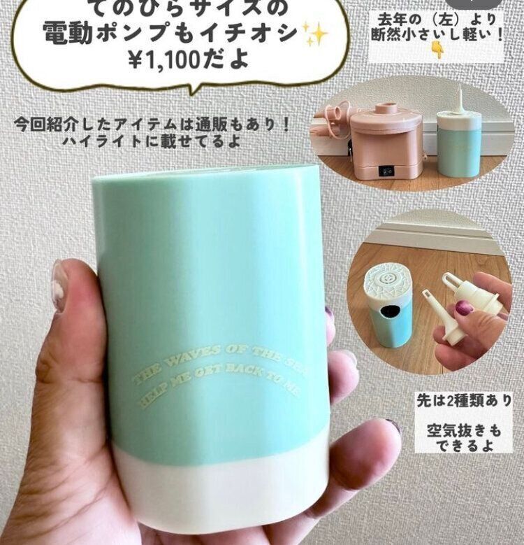 そんな時の救世主が、この「ポータブル自動空気入れ/水遊びアイテム」(1,100円)。小ぶりなので持ち運びもしやすく、できるだけ荷物を減らしたい海遊びの時にもかさばりません。電池式なので電源も不要!浮き輪を持っていくなら絶対一つは持っておきたいアイテムです。