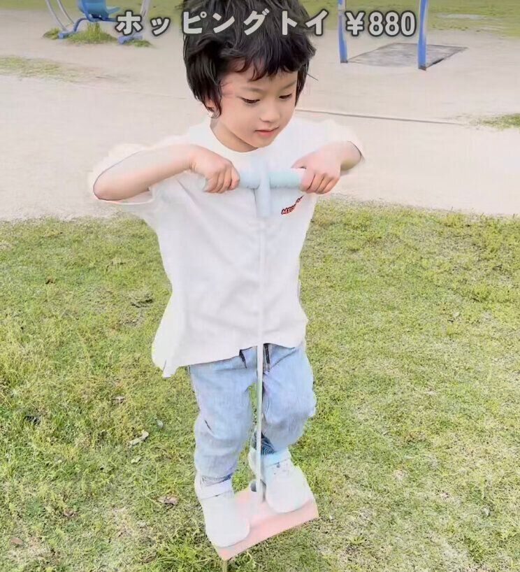 他にも、子どもが夢中になって楽しめそうな「ホッピングトイ/KIDS外遊び」(880円)も。昔から似たようなおもちゃはありますが、最近では安くておしゃれなデザインになっていますよ。跳ねるたびにピーピーと音が鳴るので、飛ぶ以外の楽しみもあって、さらに値段もお手頃価格なのがいいですね!落ちないように上手に飛ぶために、バランス感覚もつきそうです。