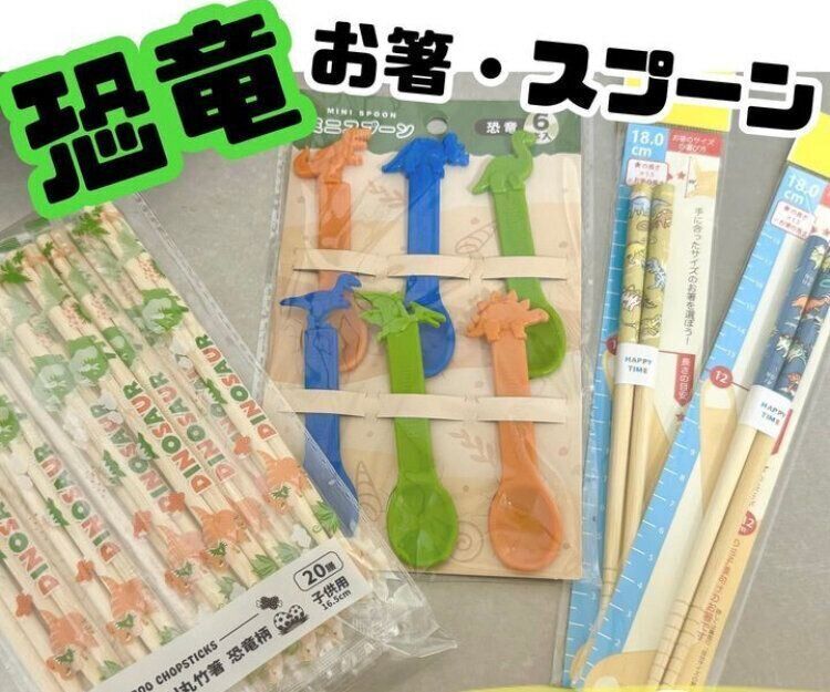 プラスティックの「ミニスプーン6P 恐竜」(110円)も、小ぶりなサイズなので冷たいカップ系のデザートを食べる時など、暑い時期には大活躍しそう!使い捨てではない「白竹箸安全 18cm ダイナソー」(110円)も販売しているので、自宅用やお弁当用に新たに購入してもよさそうです。恐竜好きなお子さんがいるかたは、ぜひセリアの恐竜コーナーをのぞいてみてください。