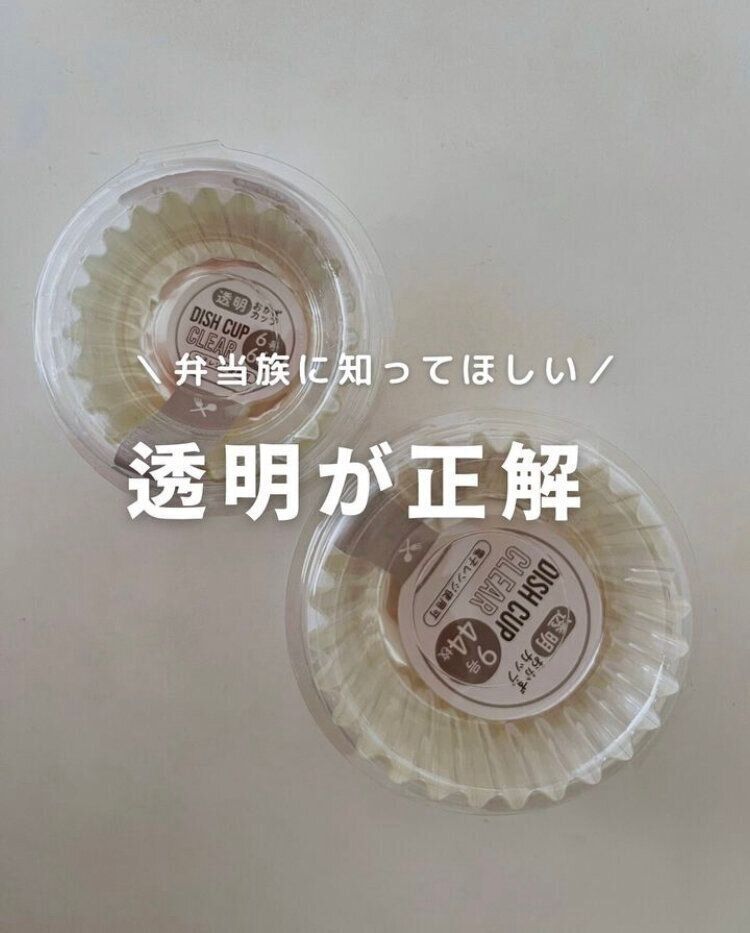 毎日お弁当を作っているかたにおすすめしたいアイテムが「透明おかずカップ・9号44枚入」「透明おかずカップ・6号66枚入」(各110円)。色が付いているものだと、時には見栄えの邪魔になってしまうこともあります。そんな時に透明のカップなら素材の色をそのまま活かすことができます。投稿写真以外のサイズや形もあるので、まとめ買いしてもよさそうです。