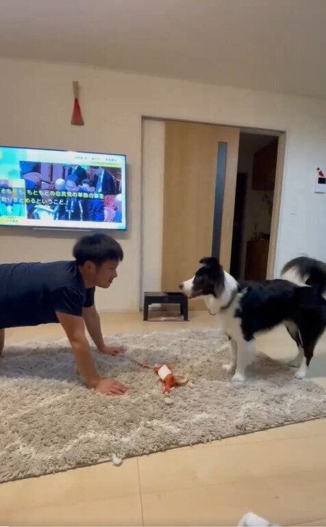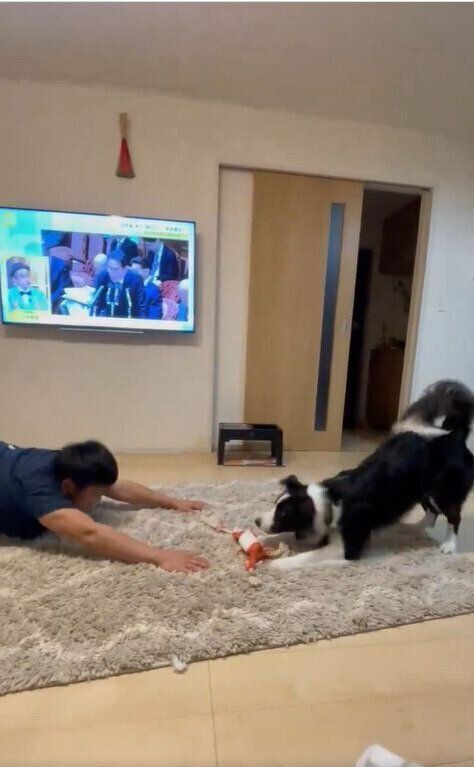 Xユーザー・ボーダーコリーのBiSくんさん(@bishasekaikaeru)には、かわいい愛犬がいます。ある日、自宅で遊ぶ様子を撮影すると、そこには飼い主さんのことを“お友だちの犬”と思っていそうなBiSくんの姿がありました。