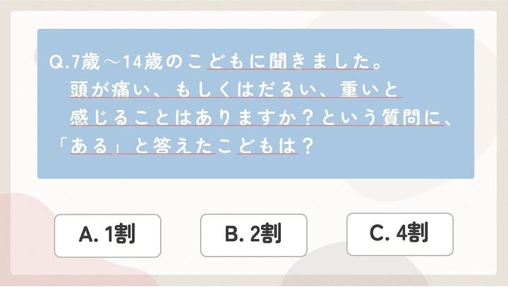 頭痛を我慢してしまったり、伝えられなかったりする子どもがいるという実態が浮き彫りに。
