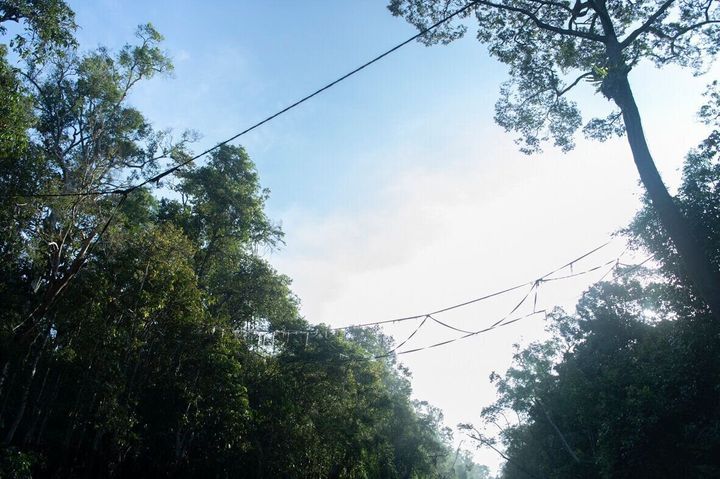 アブラヤシ農園の開発によって分断された森と森をオランウータンが移動できるよう「命の吊り橋」もかけられました。