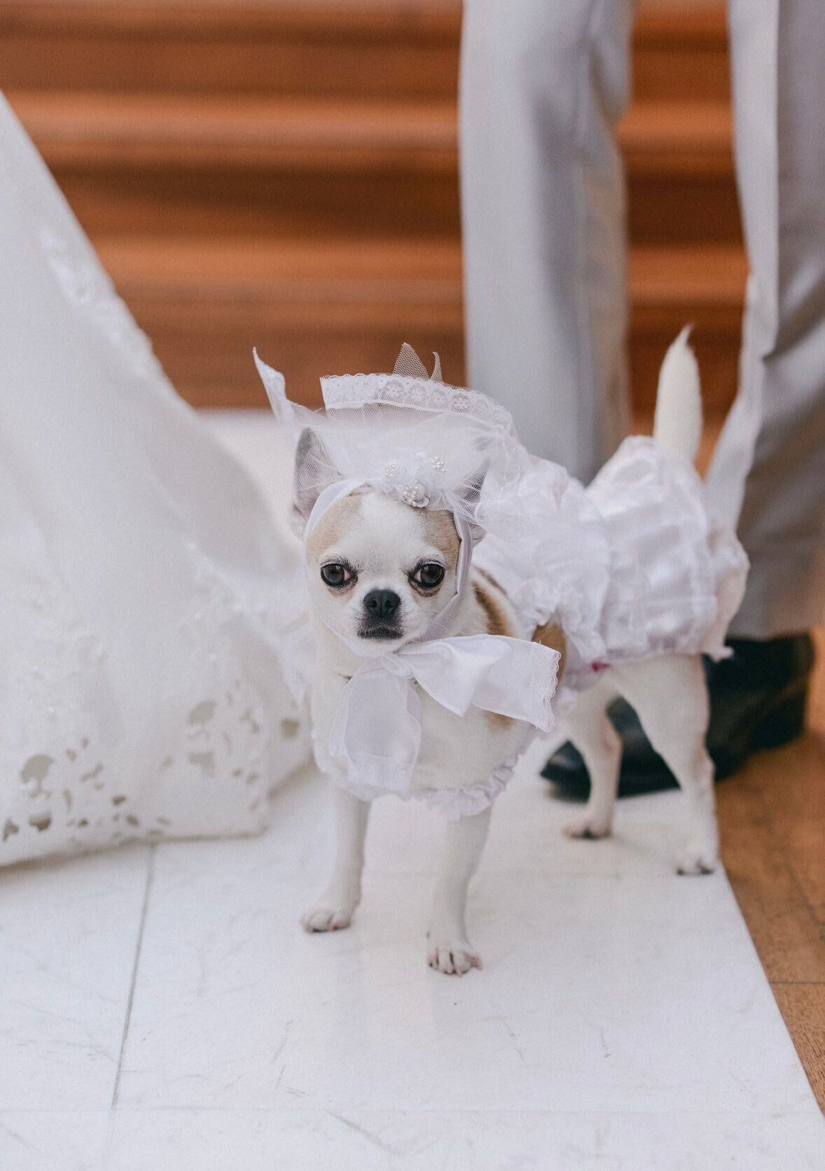 大切な家族であるおまめちゃんと人生の貴重な瞬間をともにしたイッヌさん夫婦。格式のある写真も、日常感ただよう写真も、どちらもかけがえのない素敵なウェディングフォトでした。