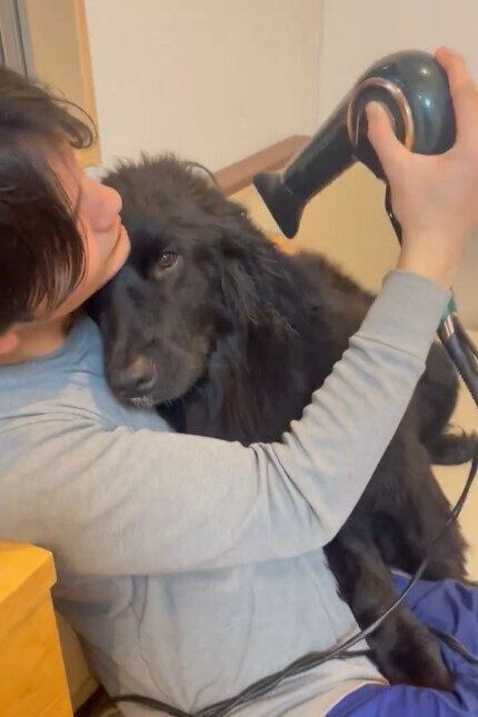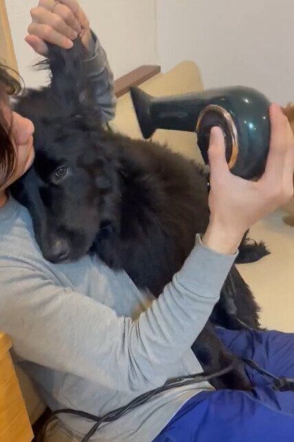 愛犬・さん太くんの様子を見て、思わず「ドライヤー中も、まったくどこまで甘ったれなんだ……」とコメントをした飼い主さん。