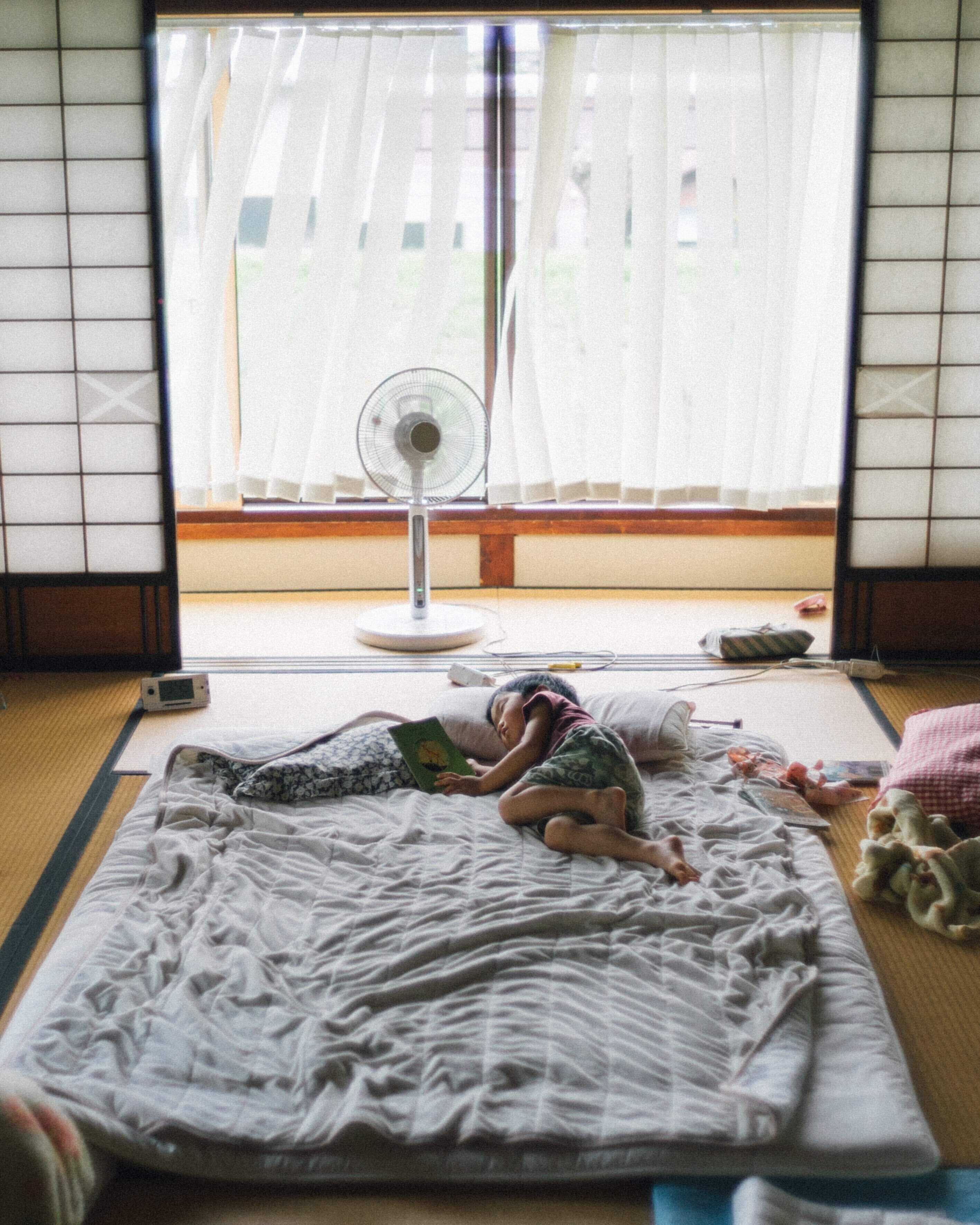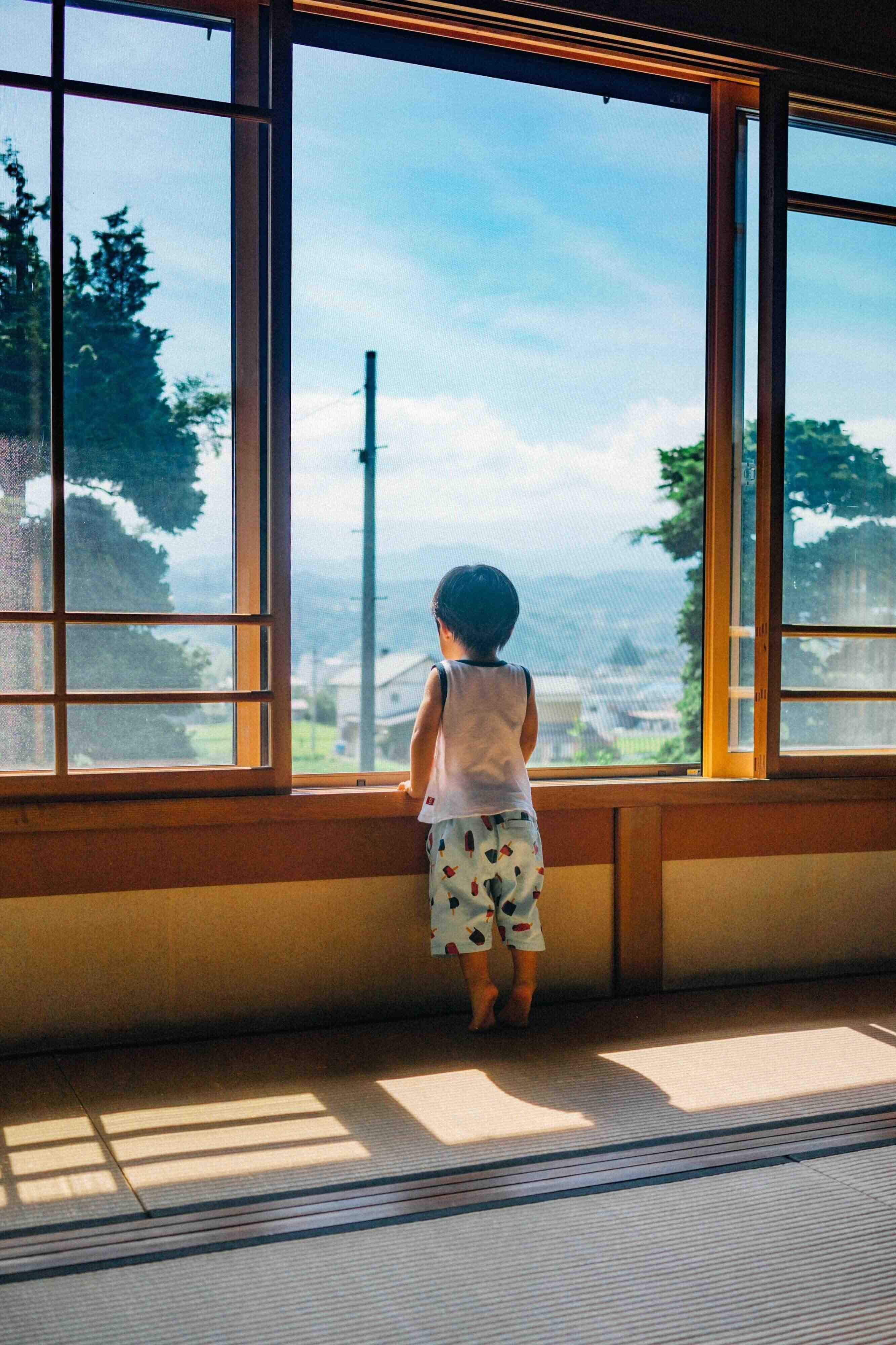 はらさん家族が住むのは築100年の古民家。まだ小さな長男くんが顎を上げて高く大きな天井を見上げる様子は、さらなる長男くんの成長を予感させてくれます。