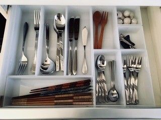 ここゆきさんはダイソーのシステムボックスでカトラリーを収納しています。カトラリー1種類に対して1つのシステムボックスを使っているので、すっきりキレイに収納することができるようです。物の住所を決めてあげることはとても大切な事なのですね。