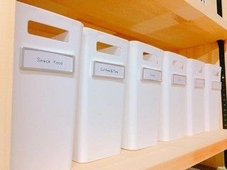 セリアやキャンドゥでゲットできる調味料入れ。ふたの色は白・黒・こげ茶色があり、鶏がらや和風だしなどの顆粒調味料やごまなどを入れるのにぴったりだそうです。同じ調味料入れでもラベリングすることで、分かりやすくなりますね。