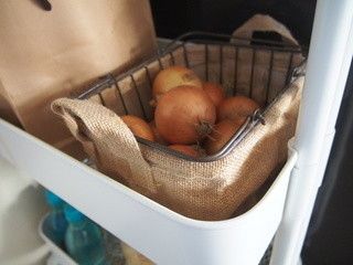 laureaさんは、セリアのバッグにワイヤーかごを入れてベジタブルストッカーとして使っているそうです。麻袋になっているので通気性が良く、両サイドに持ち手がついているのでかごが取り出しやすくなっています。