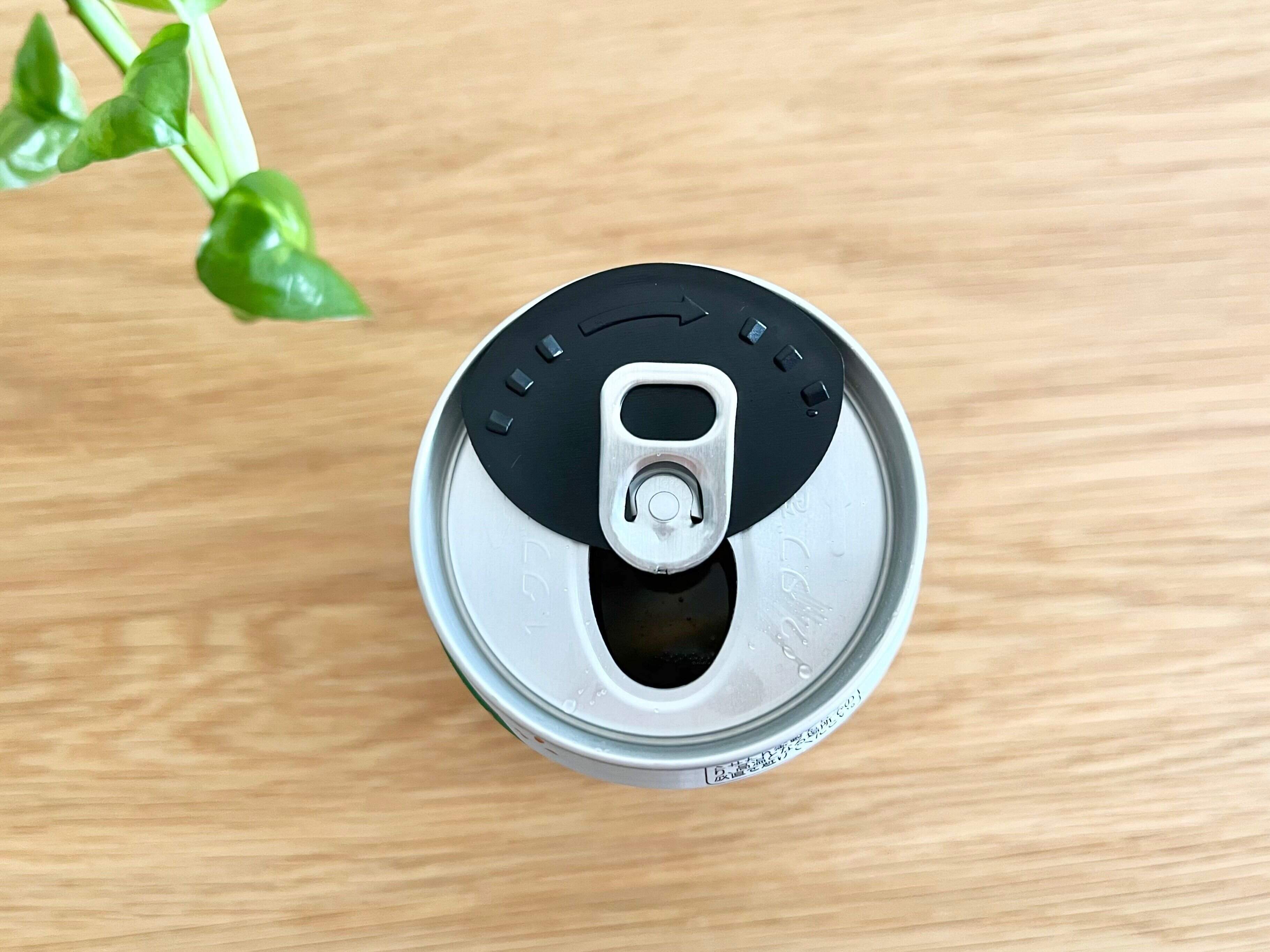 そして商品に記載されている矢印の方向にくるっとスライドさせたら蓋ができます。そして缶飲料を飲みたい時は、再び商品をスライドさせるだけで蓋を開けることができます。こんなに簡単に取り付けることができますが、プルタブの根元にしっかりはめ込んで取り付けるので、蓋が急に外れた!なんてこともなさそうです。