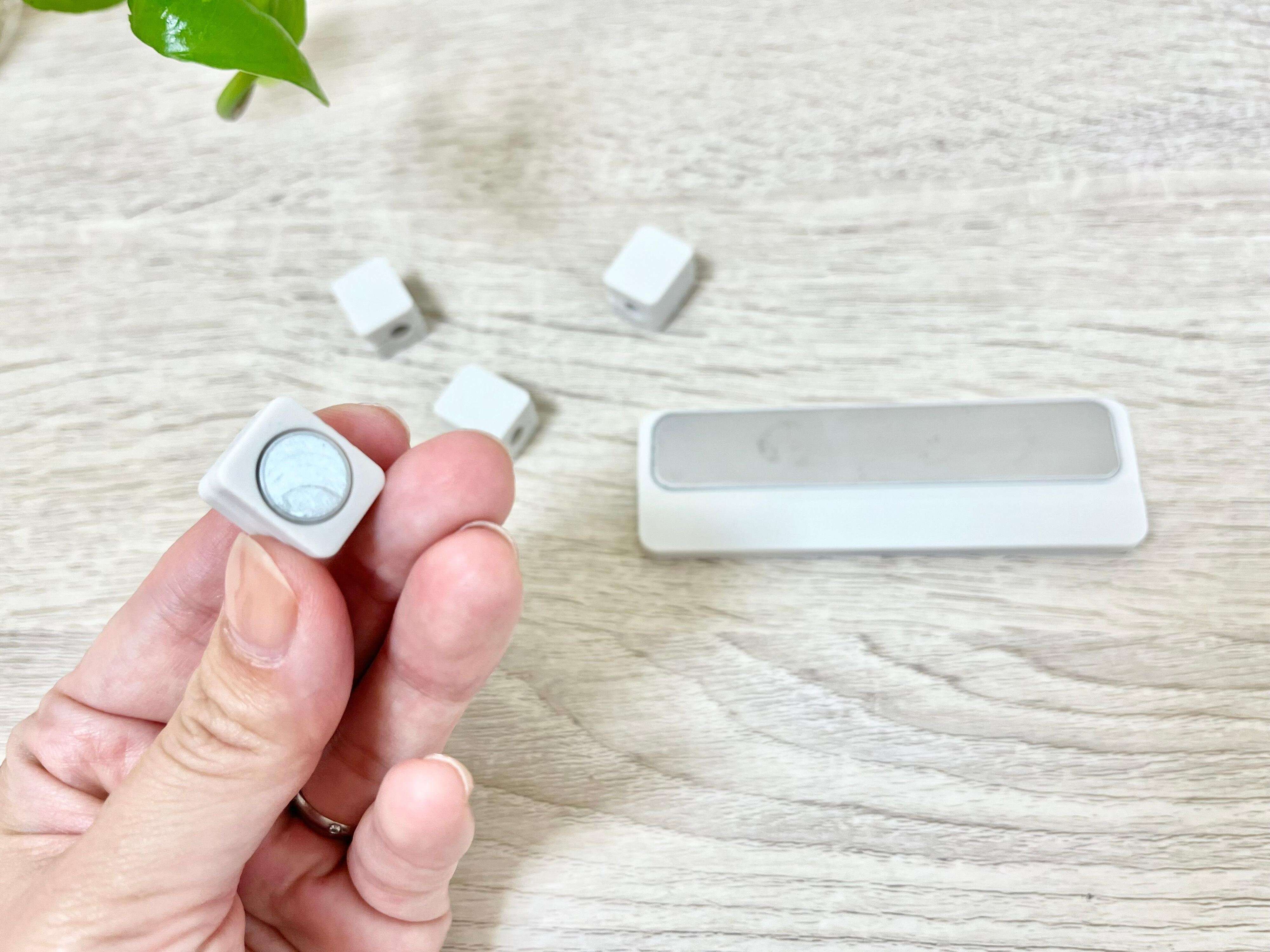 こちらの商品は、マグネットが付いたクリップが4つと、クリップを止めておく台座1つがセットになっています。見た目もシンプルでどんなインテリアにも馴染みやすいのも好印象ですよね。
