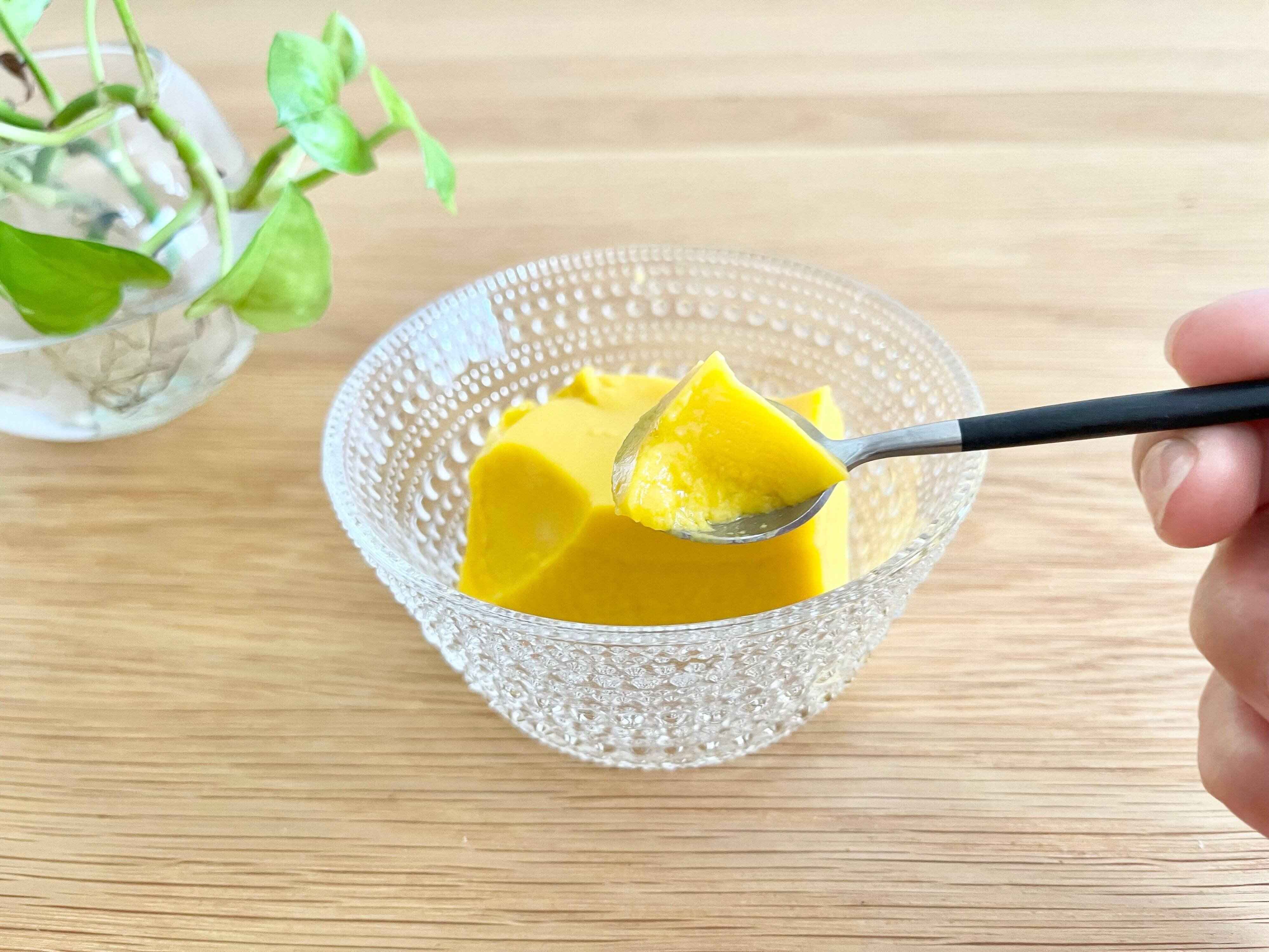 くずれてしまうと少しテンションが下がってしまいますが、そんなときはお気に入りの器でマンゴープリンをつくり直してみましょう!レシピはパッケージに記載されているものを、参考にさせていただきました。