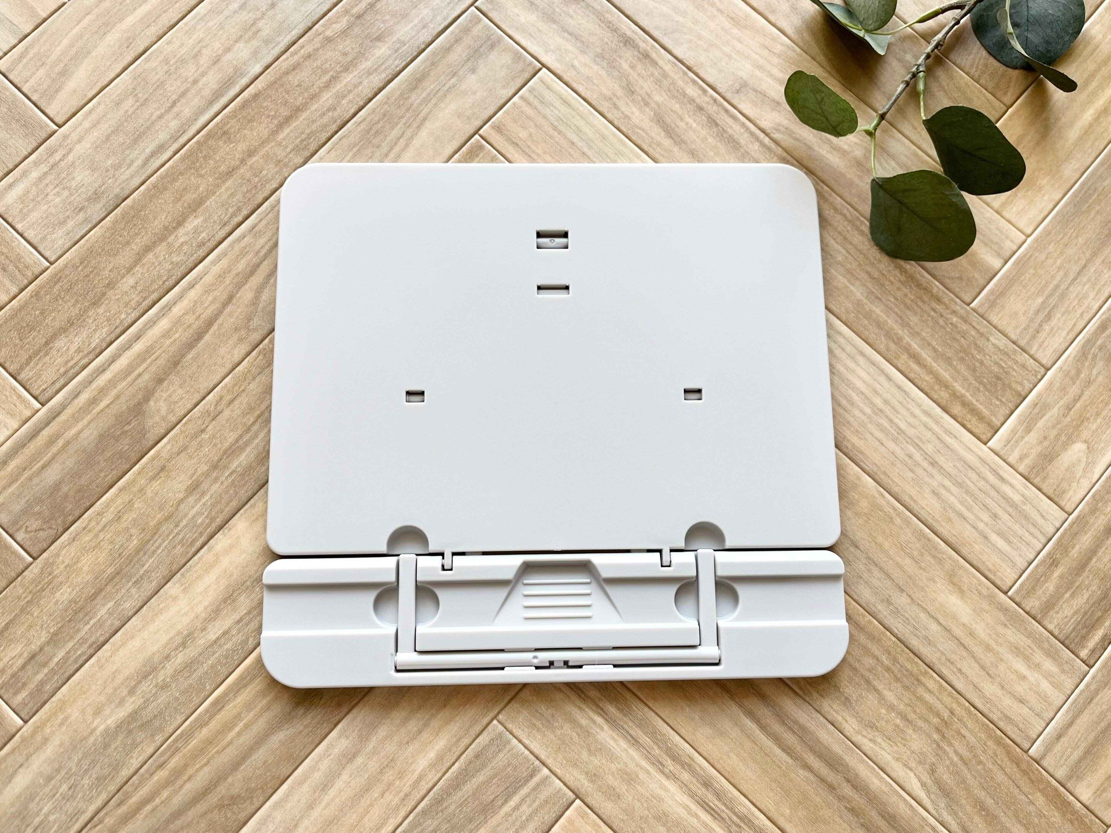 そして使い方もとっても簡単!こちらの商品は、購入した時点ではフラットに折りたたまれているので、背面を立ち上げて使用します。