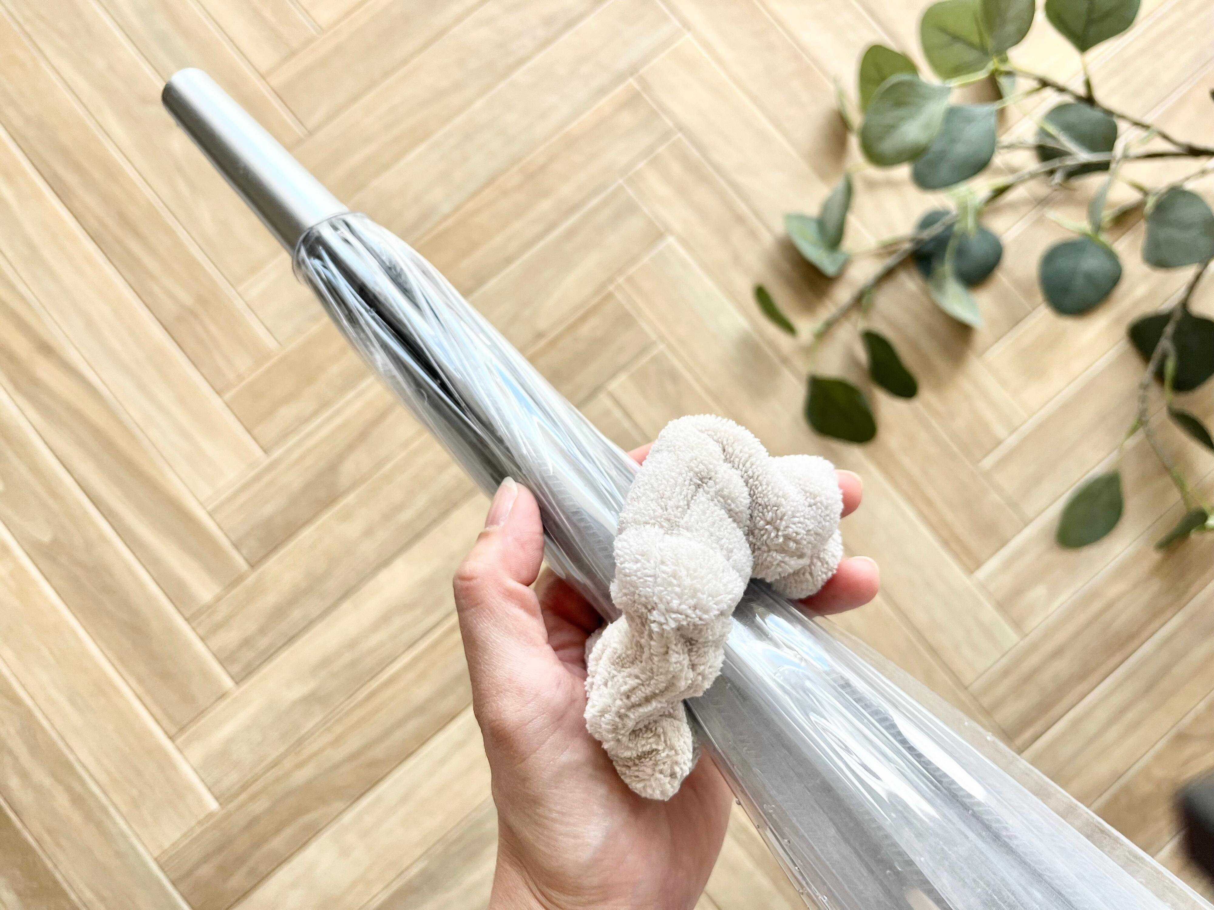 そんな悩みを解決してくるのが、セリアの「傘用吸水シュシュ」なんです。