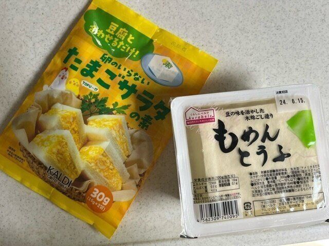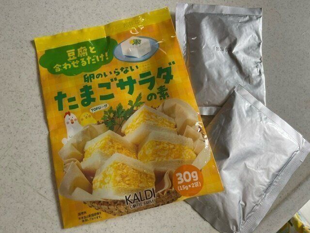 材料はこの「卵のいらないたまごサラダの素」と木綿豆腐のみ。