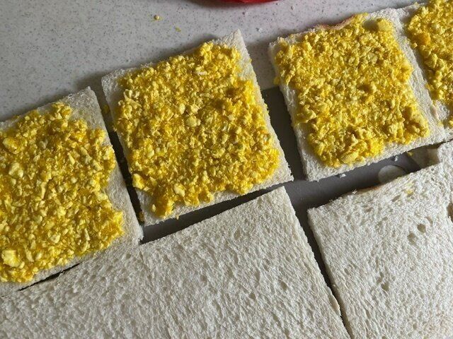 あとはサンドするだけ…。食べるまでは本当にたまごサンドになっているのか半信半疑。