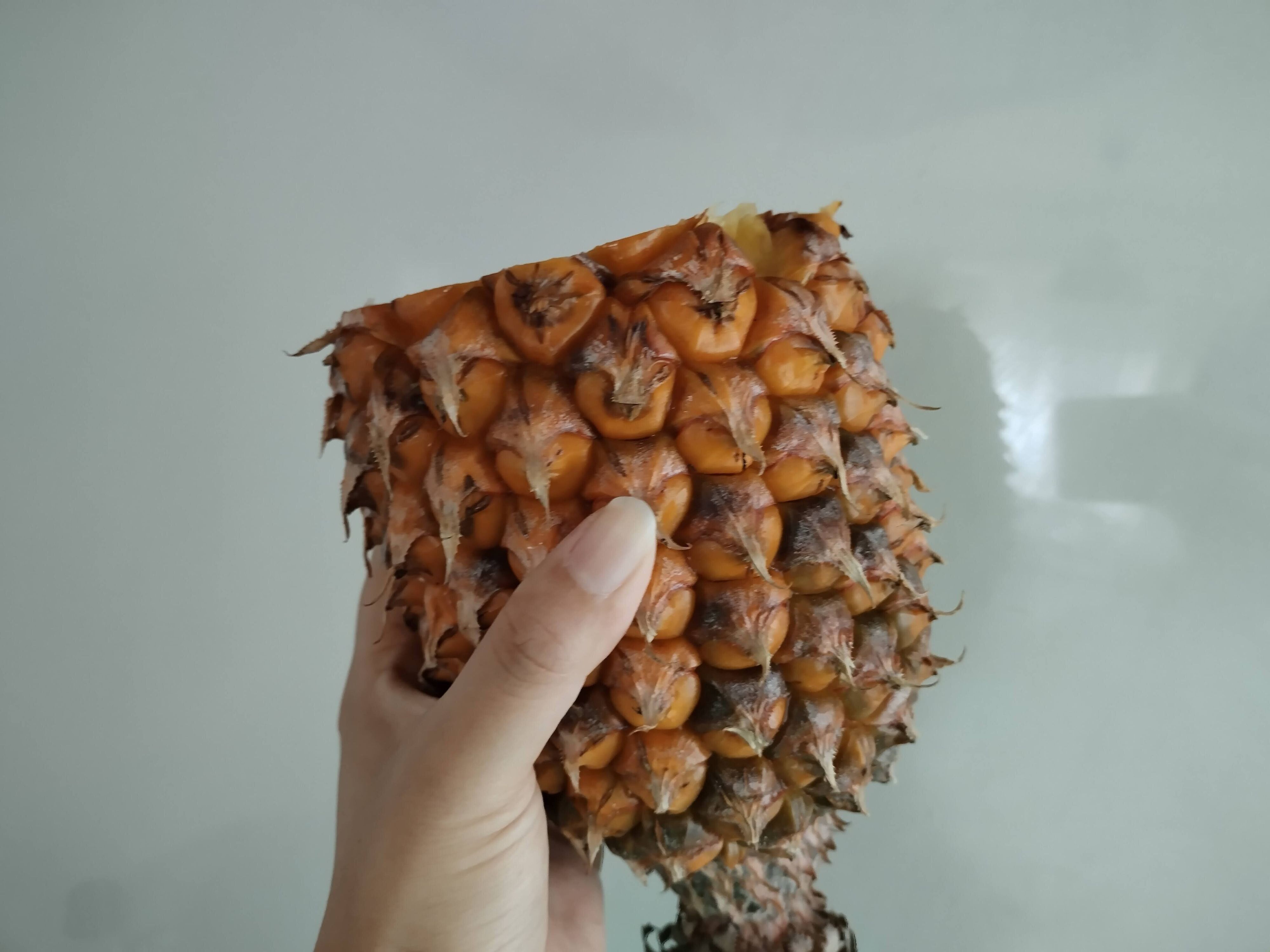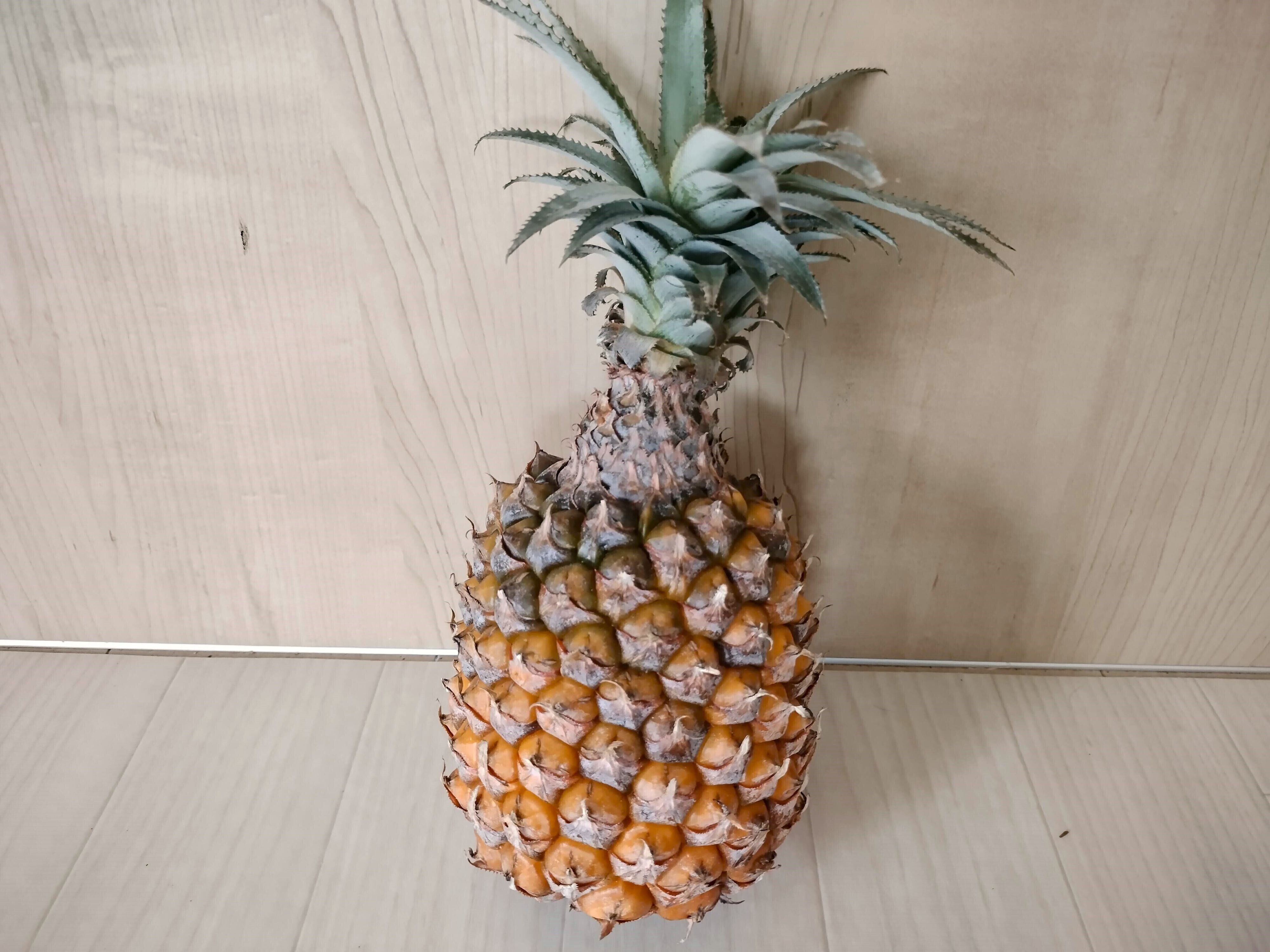 ポコットパインは、1つ税込598円(※2024年6月筆者購入時)ととってもリーズナブル。スーパーでよく見かけるパイナップルと比べると一回り小さいサイズです。