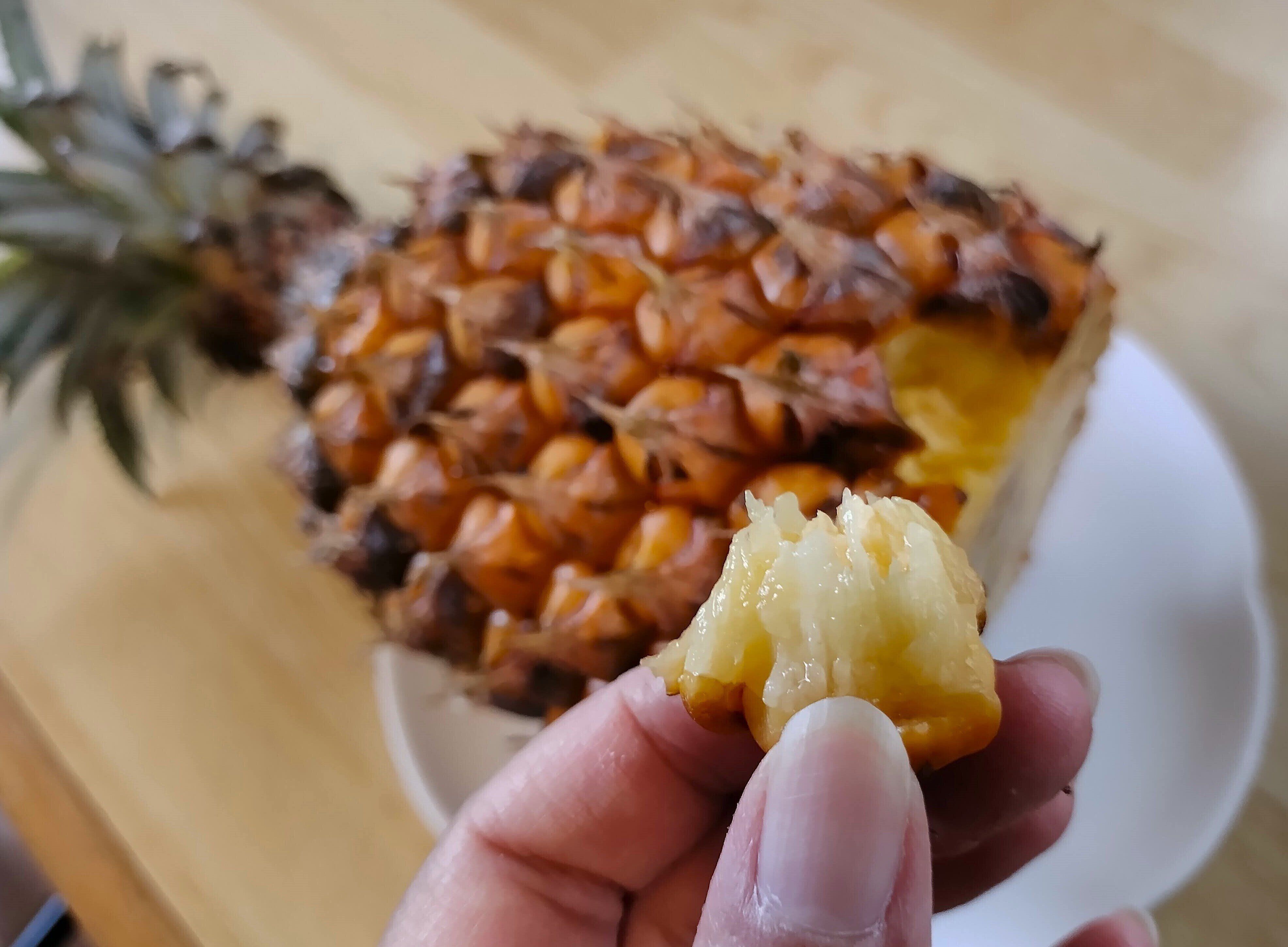通常のパイナップルは芯が硬くて食べられないので、切り落とすのが一般的だと思います。しかし、ポコットパインの芯はとっても甘くておいしいので、ぜひ切り落とさないで一緒に食べてみてください。