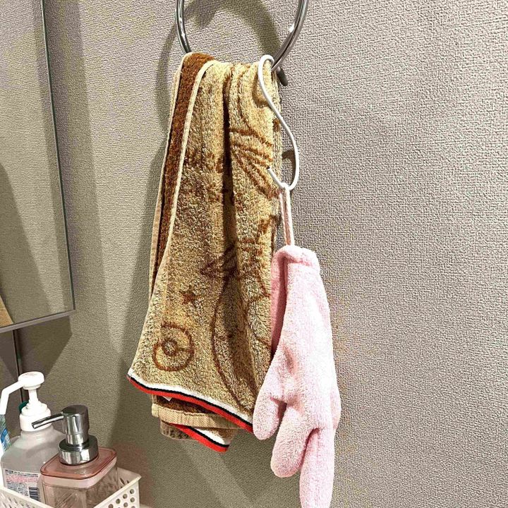 こちらの商品は輪っかがついているので、洗面所に吊るしておけばすぐに使えて場所もとりません。ちょっとしたことですが、収納をしやすいのは助かります!