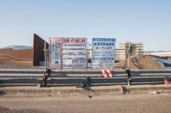 ▲再建中の防波堤は完成間近。震災の痕跡はじょじょに消えつつある