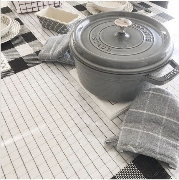 こちらはグラフチェックシリーズの鍋つかみ。お料理をするのが楽しみになってしまうアイテムですね。