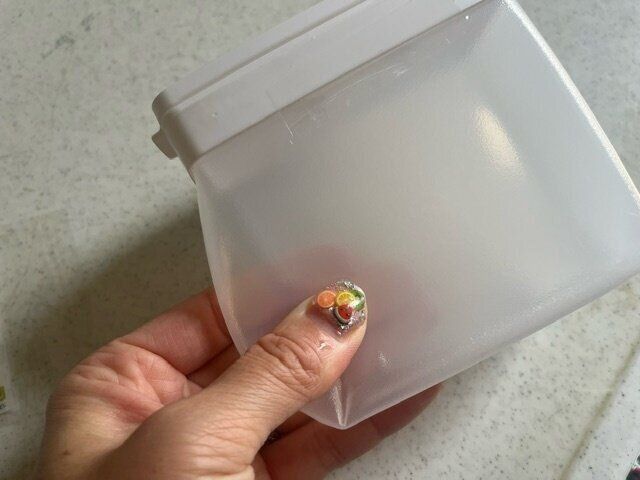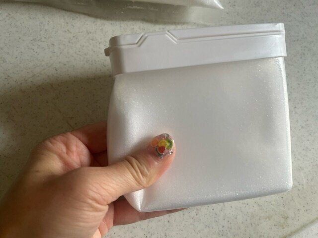 固まったところを指でぶにっと押してかたまりをほぐすことができます。