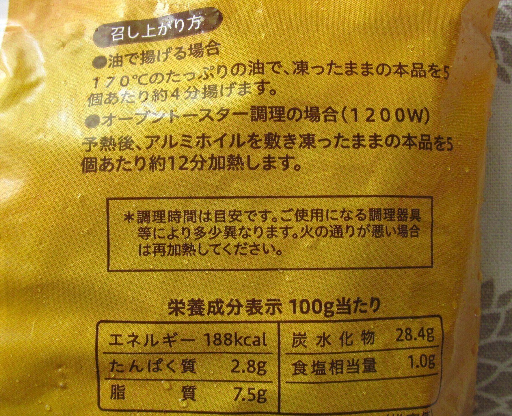 価格は税込449.28円です。1袋に10本入っているため、1本あたりおよそ45円となります。調理方法は油で揚げるだけ。170度~175度の油で3分30秒~4分30秒揚げて完成です。