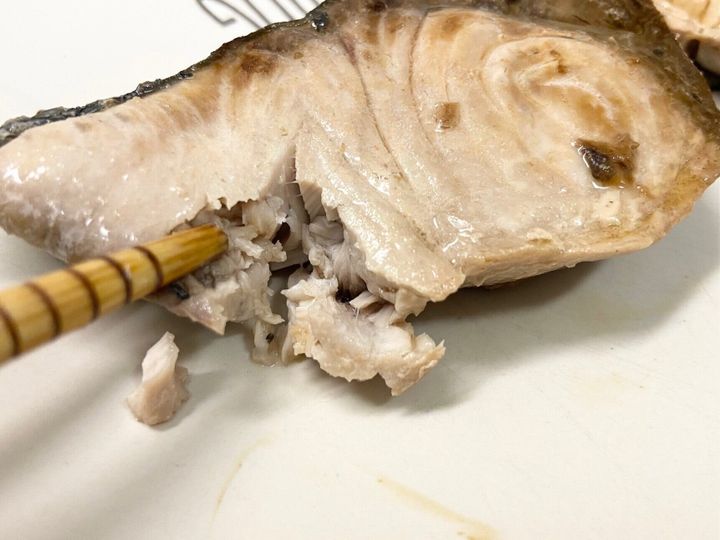 完成したぶりの塩焼きを見てびっくり!電子レンジ調理なのに焼き目が付いていて本当に直火調理したみたいな仕上がり。本体もジュージュー音がしていました。