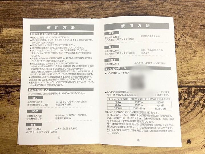 電子レンジ調理器を使ったレシピは付属の取り扱い説明書に記載されているQRコードを読み取れば表示されます。魚からお肉・お野菜・卵料理など様々なレシピが考案されていますよ。